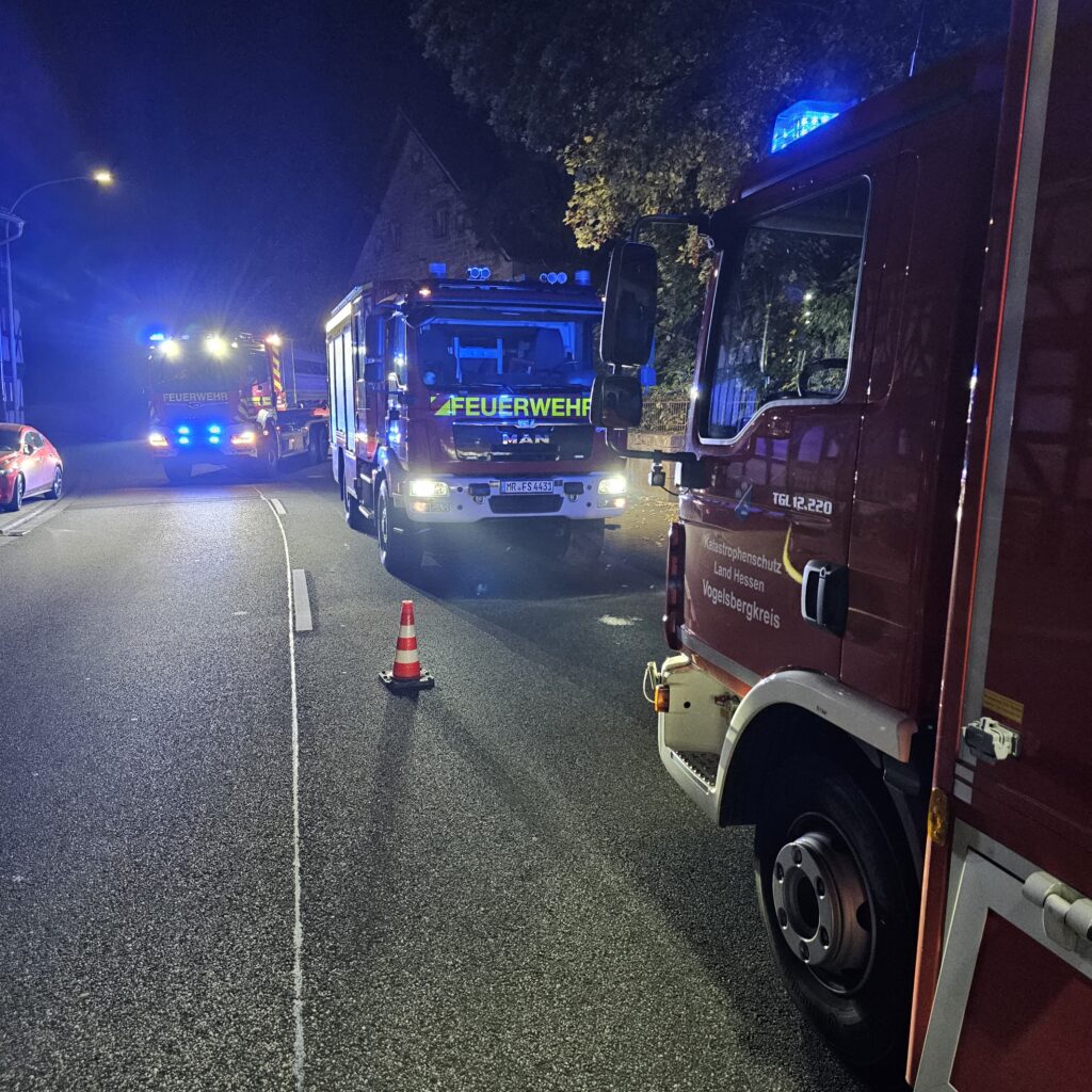 Am 11.10.2025 wurde um 0:51 Uhr zunächst die Drehleiter der Feuerwehr Stadtallendorf-Mitte alarmiert.